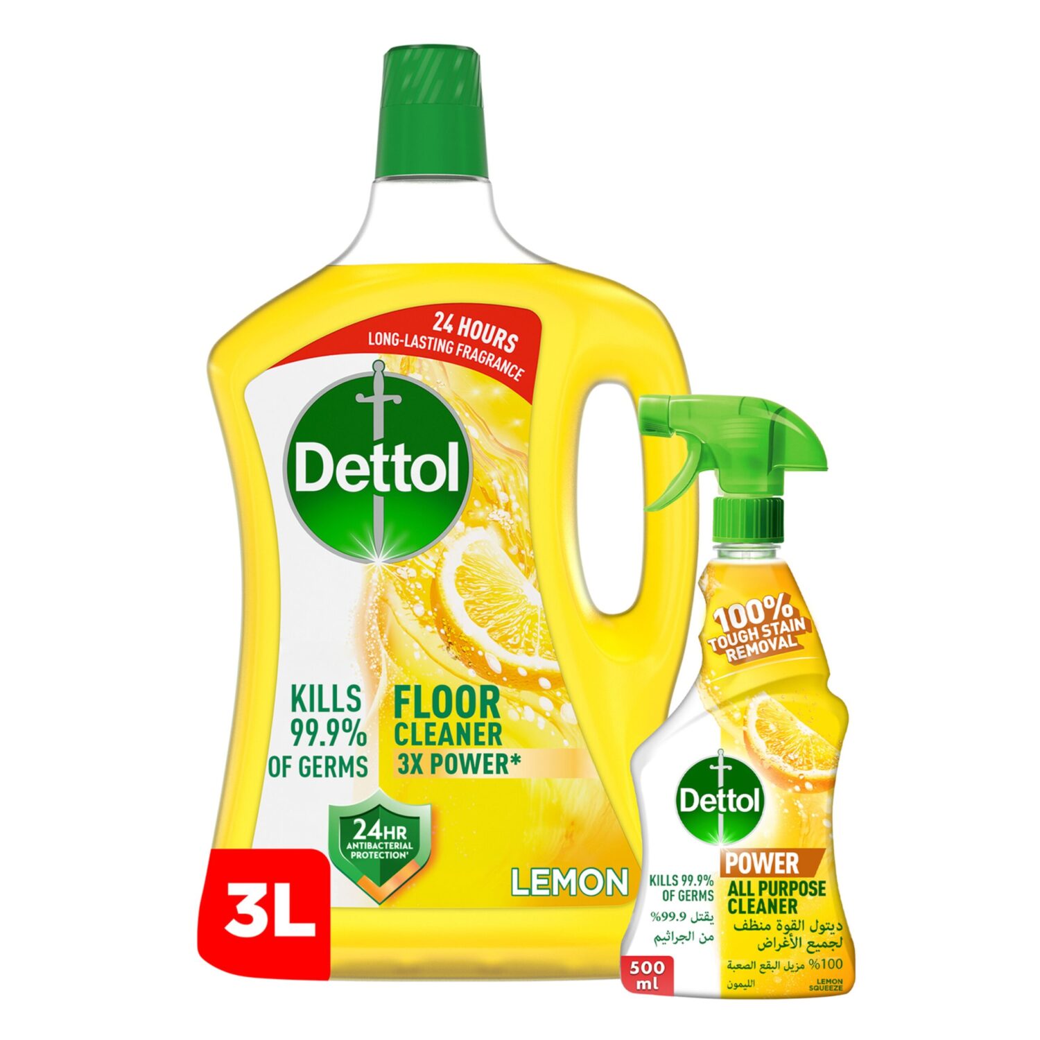 Dettol Anti-Bacterial Floor Cleaner Lemon Scent 3 Litres + All Purpose Cleaner Lemon Scent 500 ml